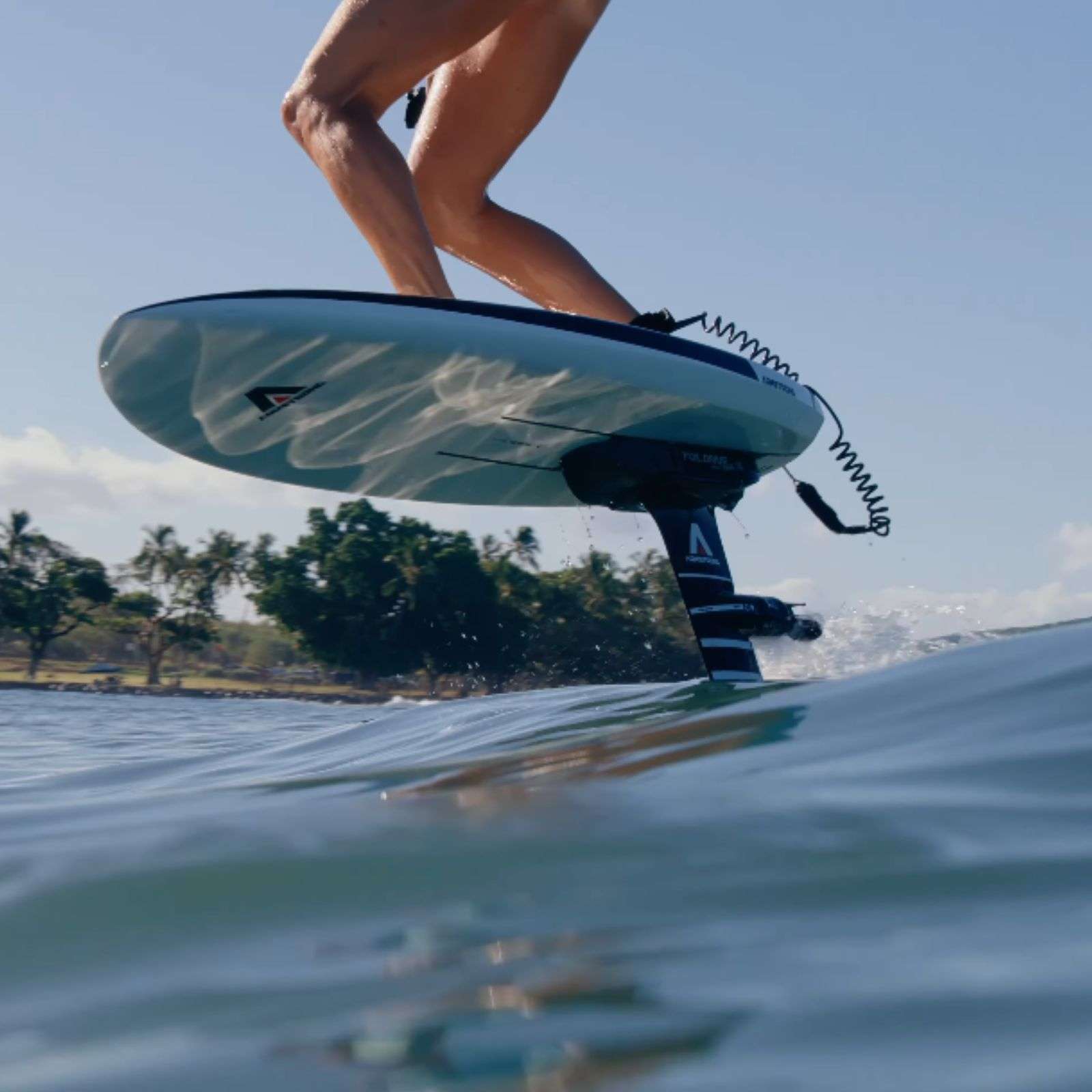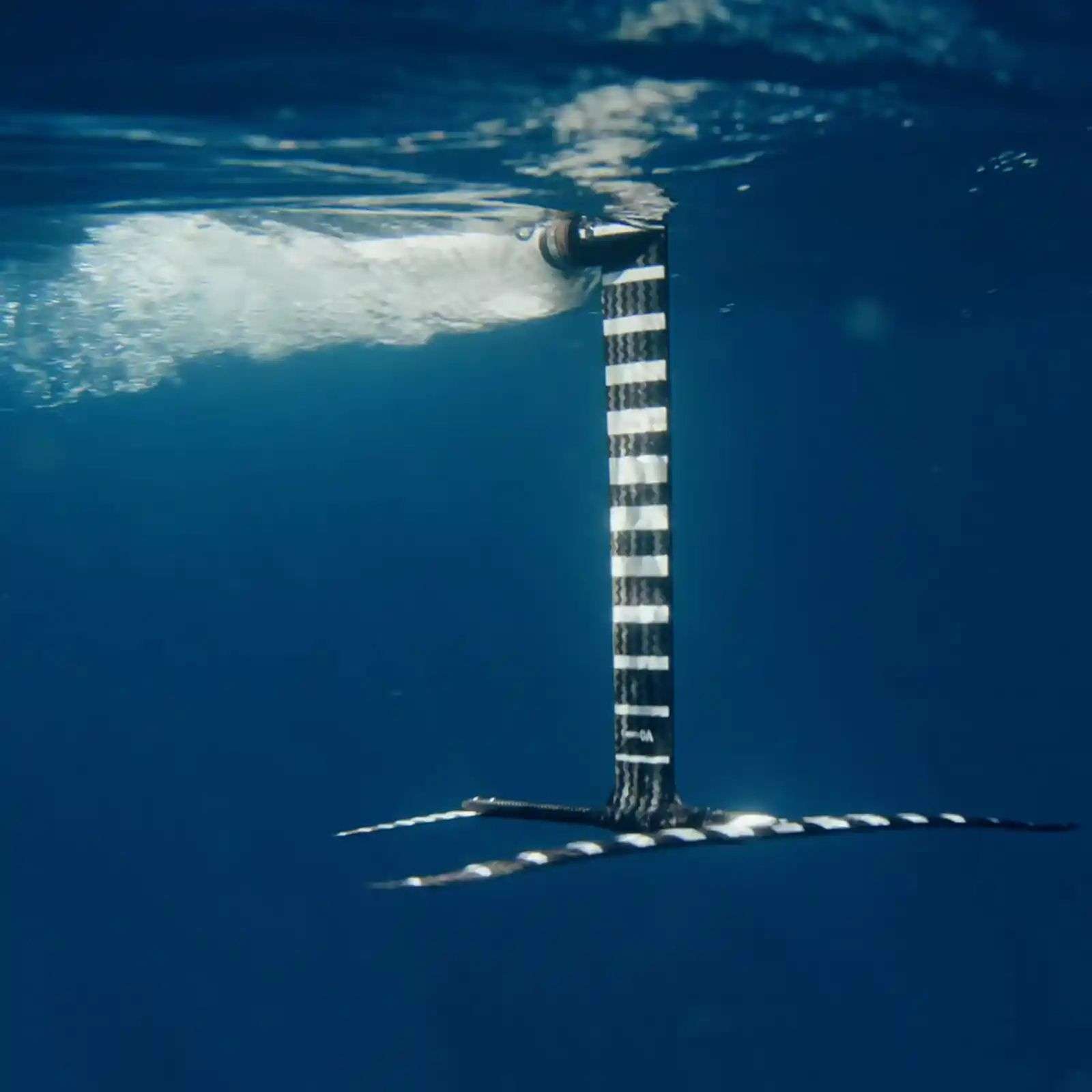 Le moteur est positionné légèrement vers l’avant du mât afin de réduire la résistance hydrodynamique et d’améliorer la portance générée par l’hélice. Cette conception novatrice offre une accélération progressive et une stabilité directionnelle exemplaire. Le résultat : une sensation de vol parfaitement continue, sans perte de vitesse ni perturbation lors du passage du moteur dans l’eau.